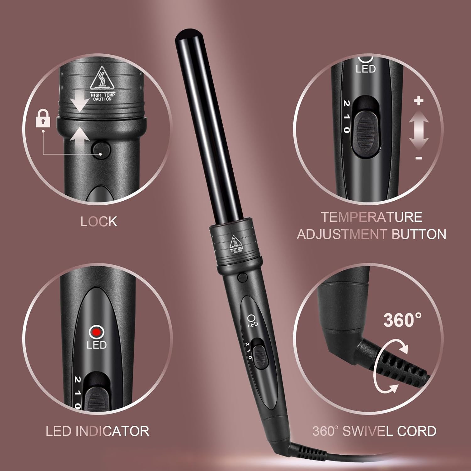 With 5 interchangeable ceramic curling iron 0.35” to 1.25”, you can create different stylish waves.The intelligent PTC heating technology ensures stable and balanced heat, and the ceramic curling iron does not damage the hair and reduces frizz.