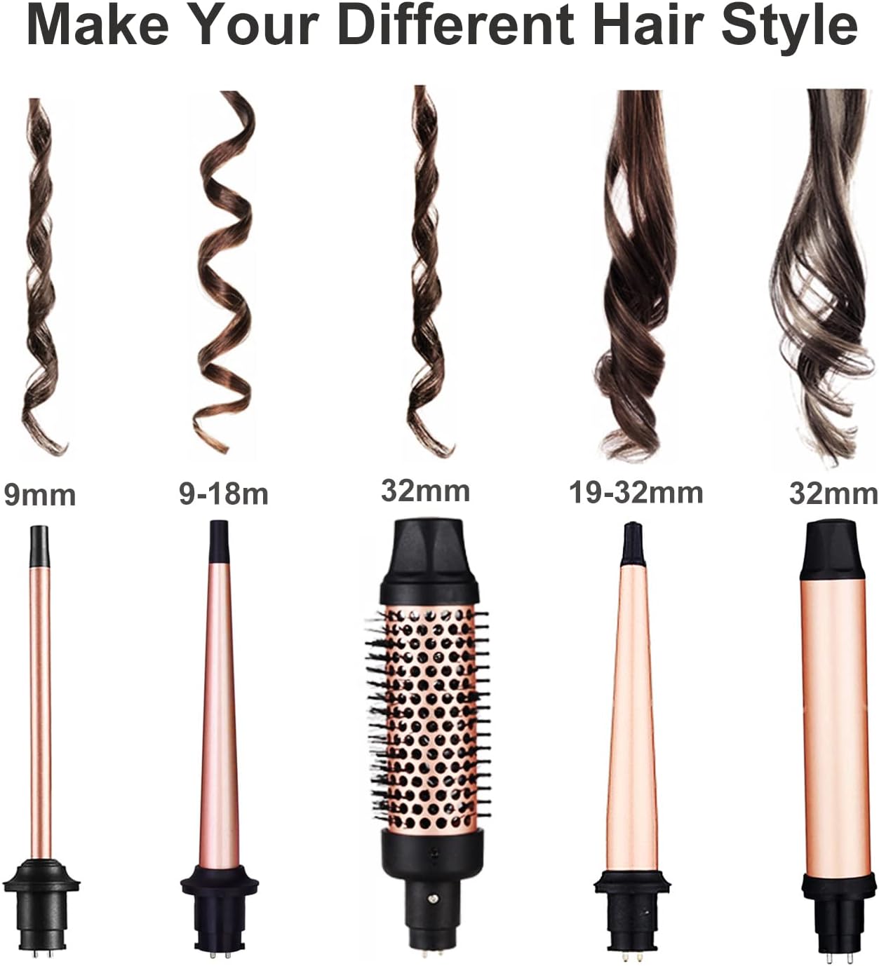 💕【Ideal Gifts】-5 in 1 curling brush curling wand set to create frizz-free, shiny, lasting curling hairstyles. Additional a great value gift list, It is a perfect gift for your friend or family. surprise