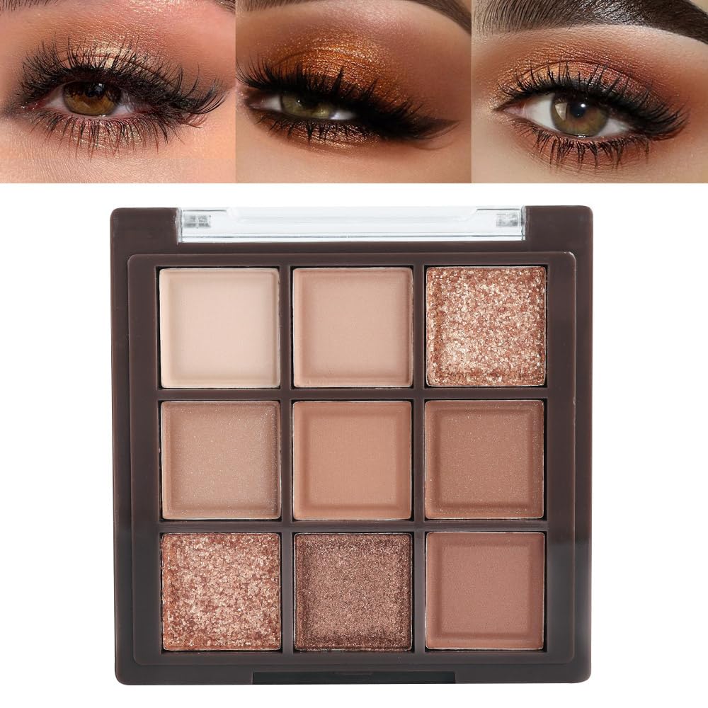 Rose Gold Dark Brown Colorful Eye shadow Palette Makeup,9Color Matte Shimmer Natural Smokey Eye Eyeshadow palettes Highly Pigmented Neutral Naturing-Looking Long Lasting Waterproof
