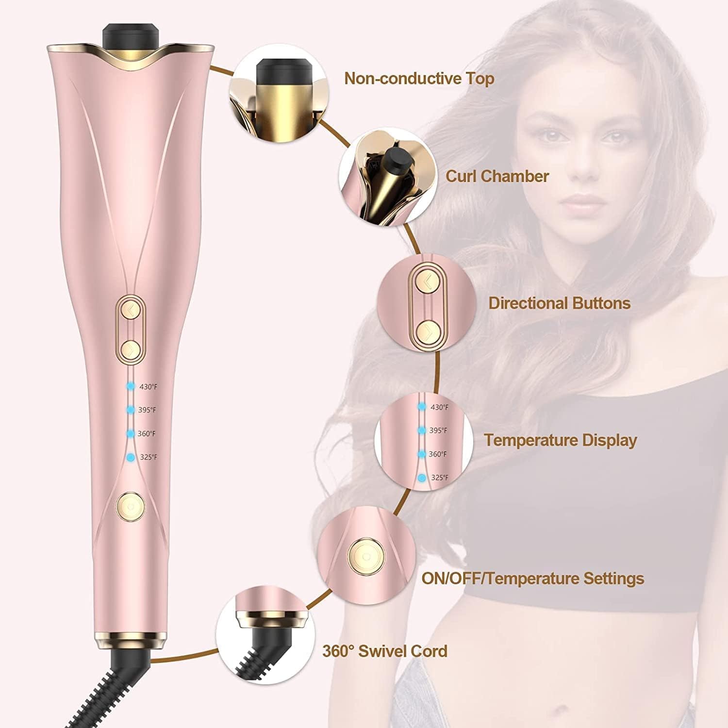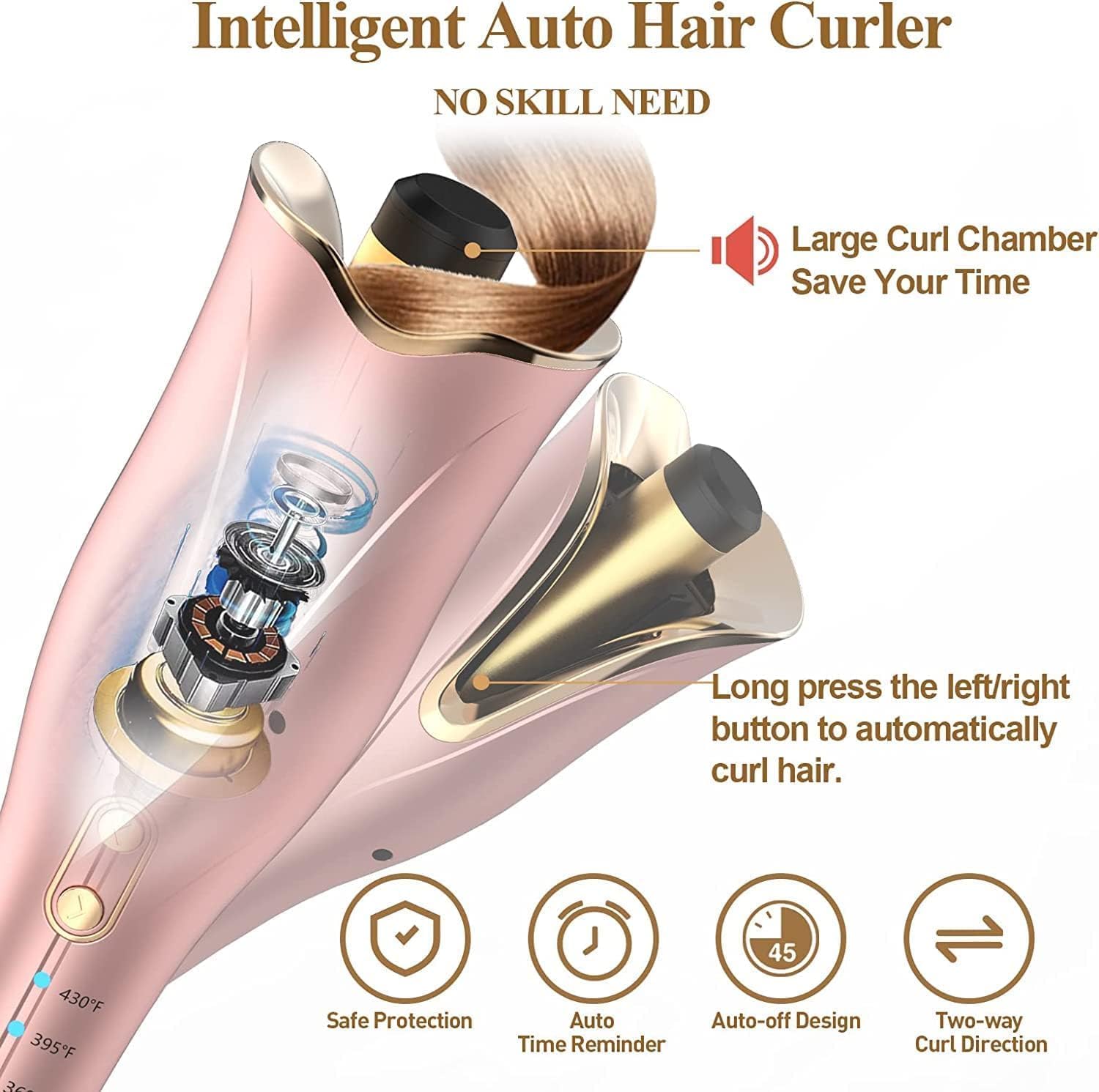 3 TEMP SETTING & REMINDER TIMERS: The auto hair curler provides 3 temp settings, from 360℉/395℉/430℉ to fit different hair types, can meet your hairstyle needs. The 12S timer reminder to avoid hair damage due to overheating