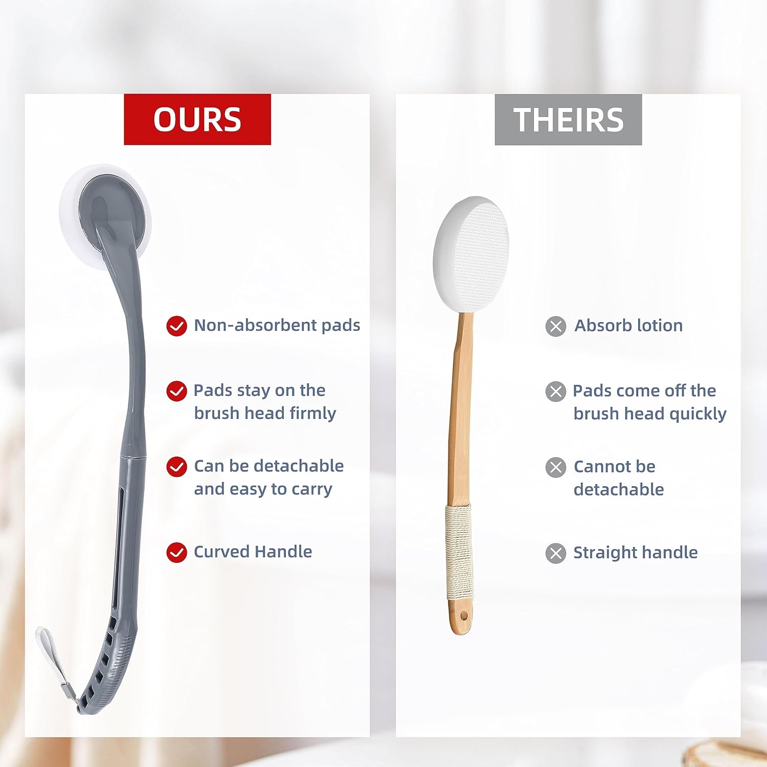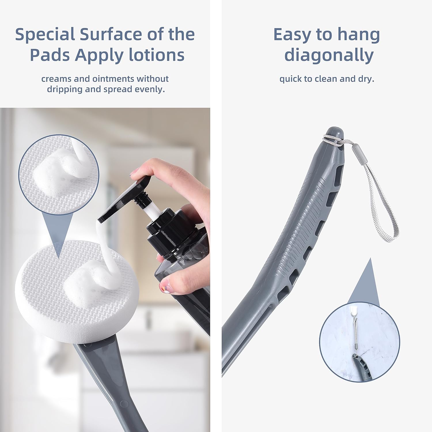 Replaceable and easy to clean-The back applicator pads are detachable, so there are two extra EVA sponge applicator pads for easy replacement. It is very easy to clean, just wash it with clean water and hang it in a ventilated place to dry. The durable back applicator for lotion does not require frequent replacement of applicator pads.