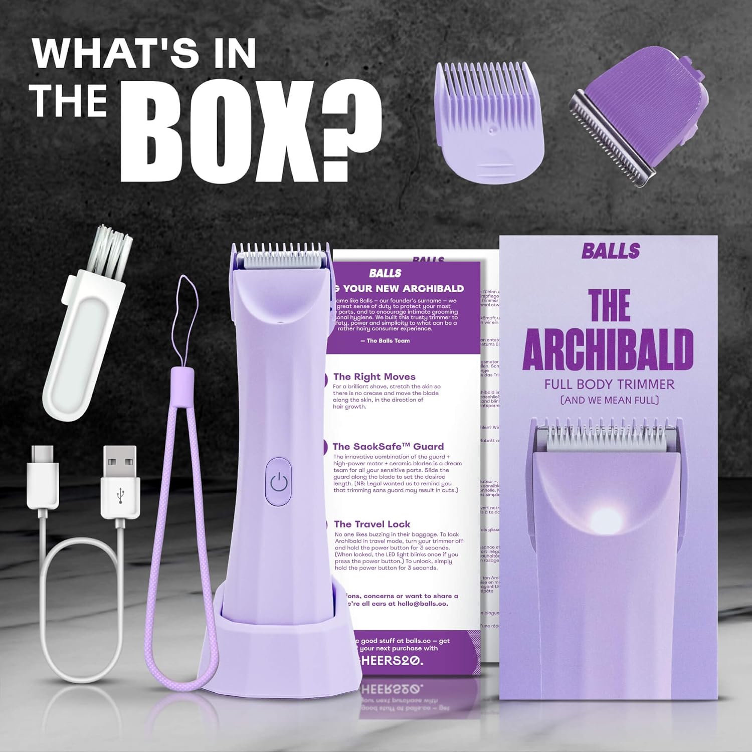 BALLS V3 The Archibald – Body and Bikini Trimmer Women – Wet/Dry, No Cuts, 100% Waterproof, Cordless – Pubic Hair Trimmer for Women and Men with Replaceable Blades