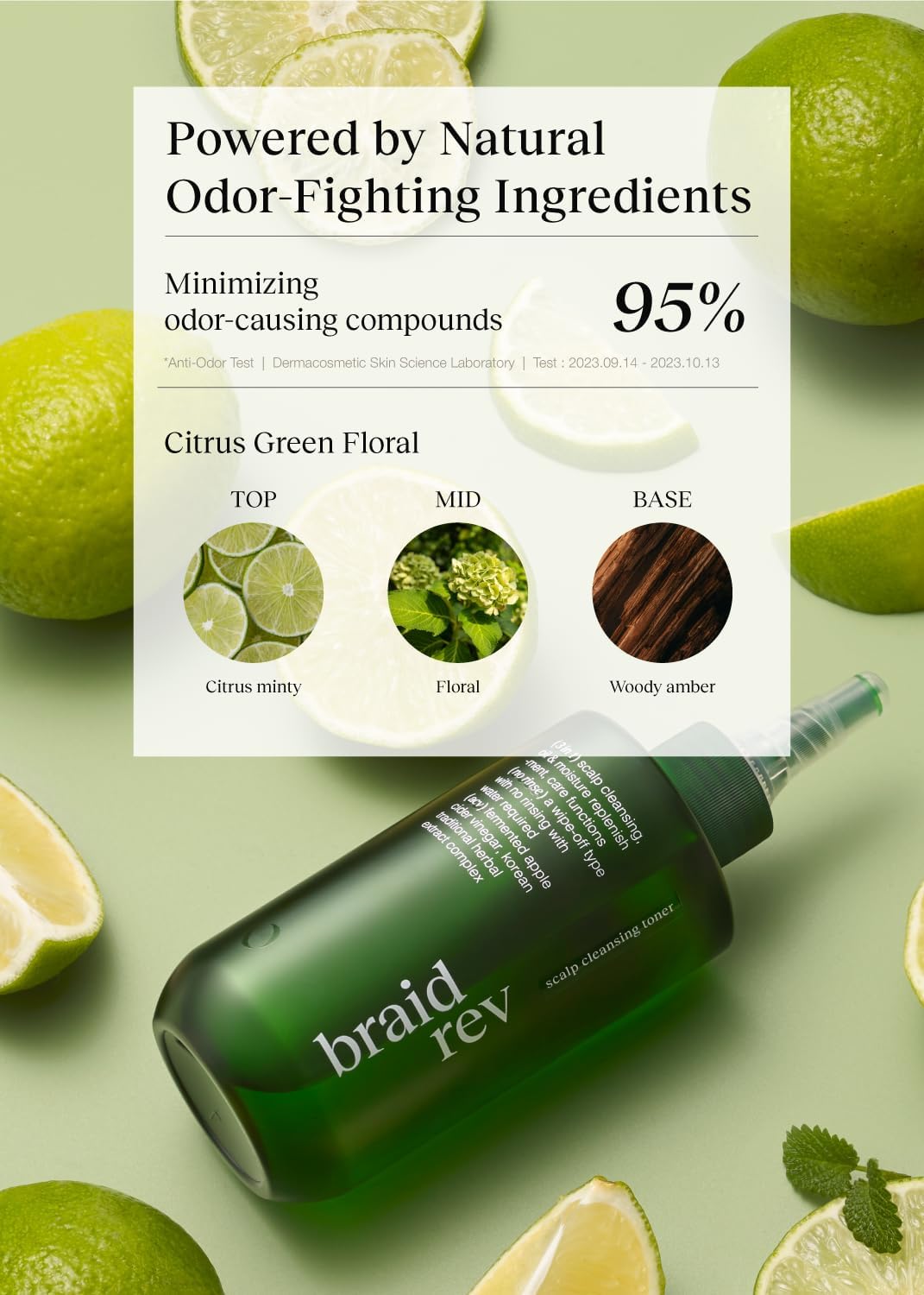 Braid Rev Scalp Cleansing Toner for Braiding Hair, Apple Cider Vinegar Scalp Treatment Exfoliator, No-Rinse, Scalp Treatment for Dry & Itchy, Moisturizing Braid, Detoxify, 6.76 Fl Oz