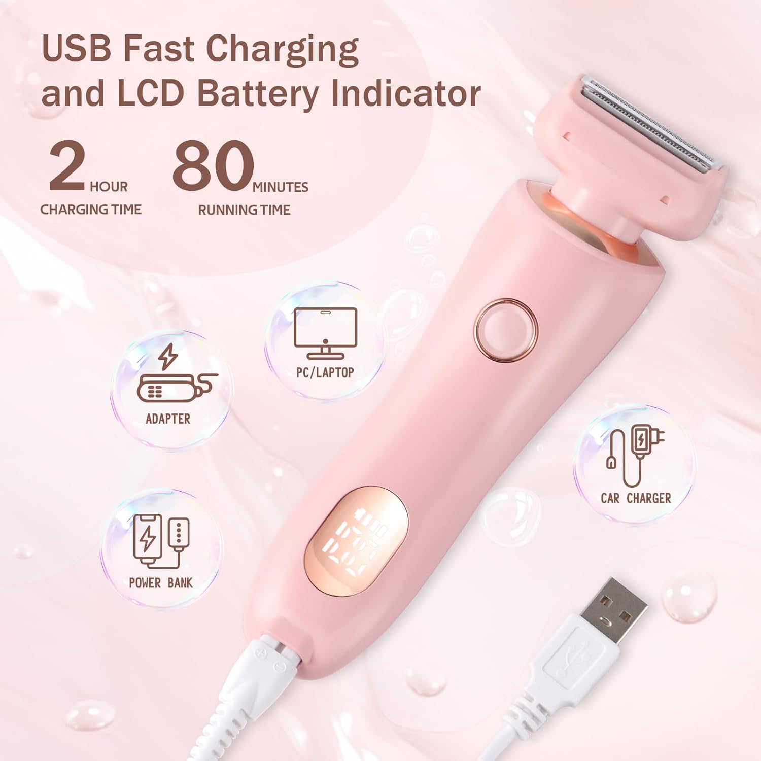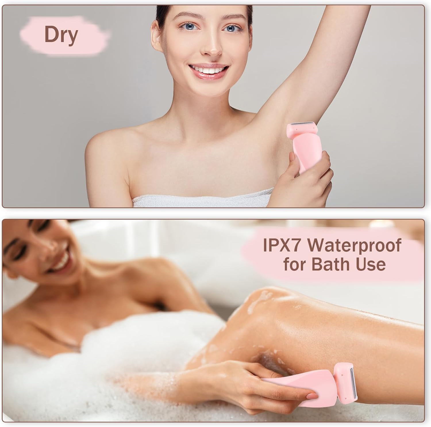 2-in-1 Gentle : Designed for women’s sensitive areas, this shaver for women features advanced 3D floating foil and hypoallergenic blades, ensuring a smooth, safe shave. The blades adapt to body contours, providing a close shave without bumps, nicks, or irritation. Experience a comfortable, pain-free shaving experience, effectively removing unwanted hair
