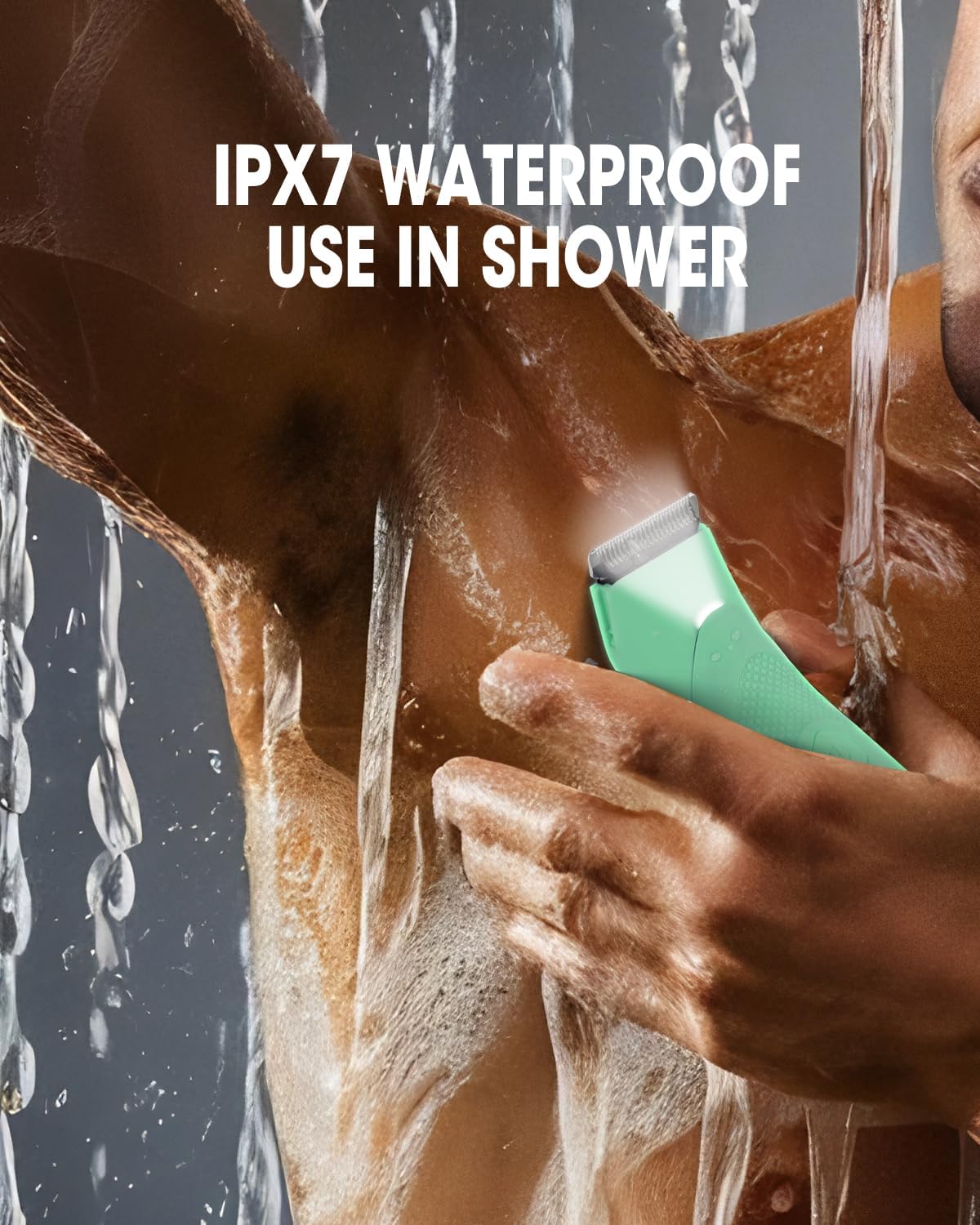 Lighted Body Hair Trimmer – with a built-in LED light, clearly see every detail while grooming, even in hard-to-see areas like the private areas, bikini zones and below-the-belt