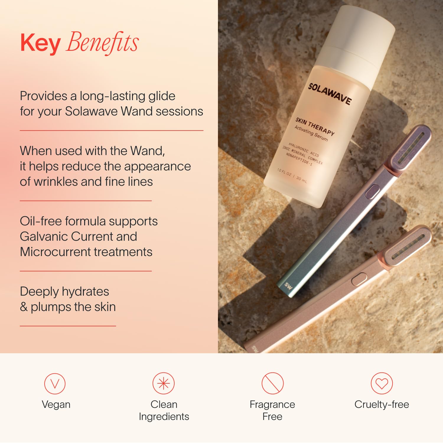 Solawave Wand Skin Therapy Activating Serum | Hyaluronic Acid and Peptides | Enhance Skincare Device Results | Hydrating Microcurrent Galvanic Current | Wrinkle Smoothing