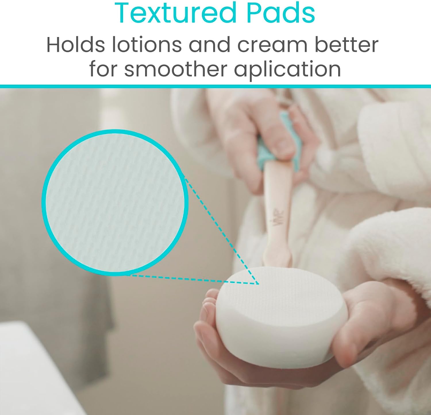 Vive Back Lotion Applicator Replacement Pads (6 Pack) – Long Reach Handle Loofah Sponge Shower Scrubber for Self Application – Body Bath Wash Brush for Skin Cream, Suntan, Tanning, Aloe – Men, Women