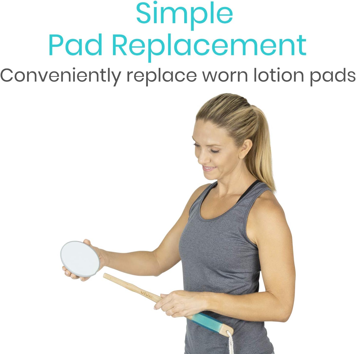 𝗦𝗜𝗫 𝗥𝗘𝗣𝗟𝗔𝗖𝗘𝗔𝗕𝗟𝗘 𝗔𝗣𝗣𝗟𝗜𝗖𝗔𝗧𝗢𝗥𝗦: Conveniently replace worn lotion pads as needed with the Vive replacement lotion applicator pads. The soft foam applicators allow lotions, creams, ointments and more to be applied with minimal mess and waste. Each of the six dual-sided pads has a small opening for easily installing on a Vive lotion applicator handle for easy applying lotion or creams to hard to reach areas.